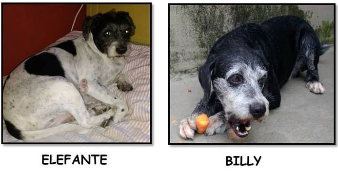 Elefante e Billy, pertencem a Luana Arthur que está oferecendo R$ 200 de recompensa por cada cachorro para caso alguém ache e os devolva para ela. Os animais sumiram na rua Maringá, em Barcelona, próximo ao Cinturão Verde e a mata da Cesan.