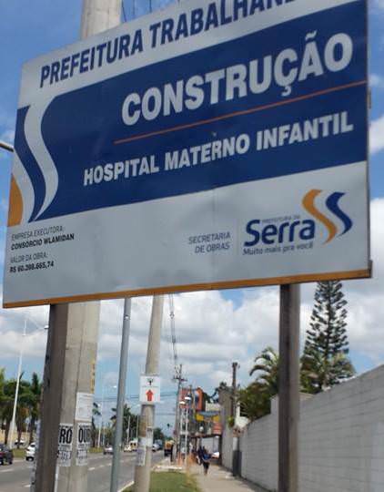 Segundo informações da Secretaria de Comunicação da Prefeitura da Serra (Secom), estão sendo finalizadas as planilhas das adequações nos projetos estruturais do Hospital Materno Infantil. A revisão desses projetos será finalizada este mês e passará por análise da Caixa Econômica Federal. A previsão é de que as obras sejam retomadas no primeiro semestre deste ano. Serão investidos mais de R$ 60 milhões nas obras do Hospital Materno Infantil, no Bairro Parque Residencial Laranjeiras.