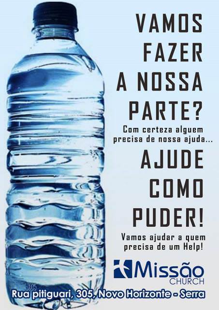 Quem quiser contribuir com água mineral pode se dirigir às igrejas Batista Betel e Batista Central, ambas em Carapina Grande, e Missão Churc, em Novo Horizonte. Doações também podem ser agendadas por meio do telefone 99957-6308 (Fernando).