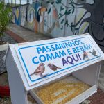 Muito mais do que um jardim, foi feita uma área com comida e água para cães e gatos de rua se alimentarem e matarem sua sede. Também tem comedouro para os pássaros que ali sobrevoam.