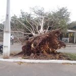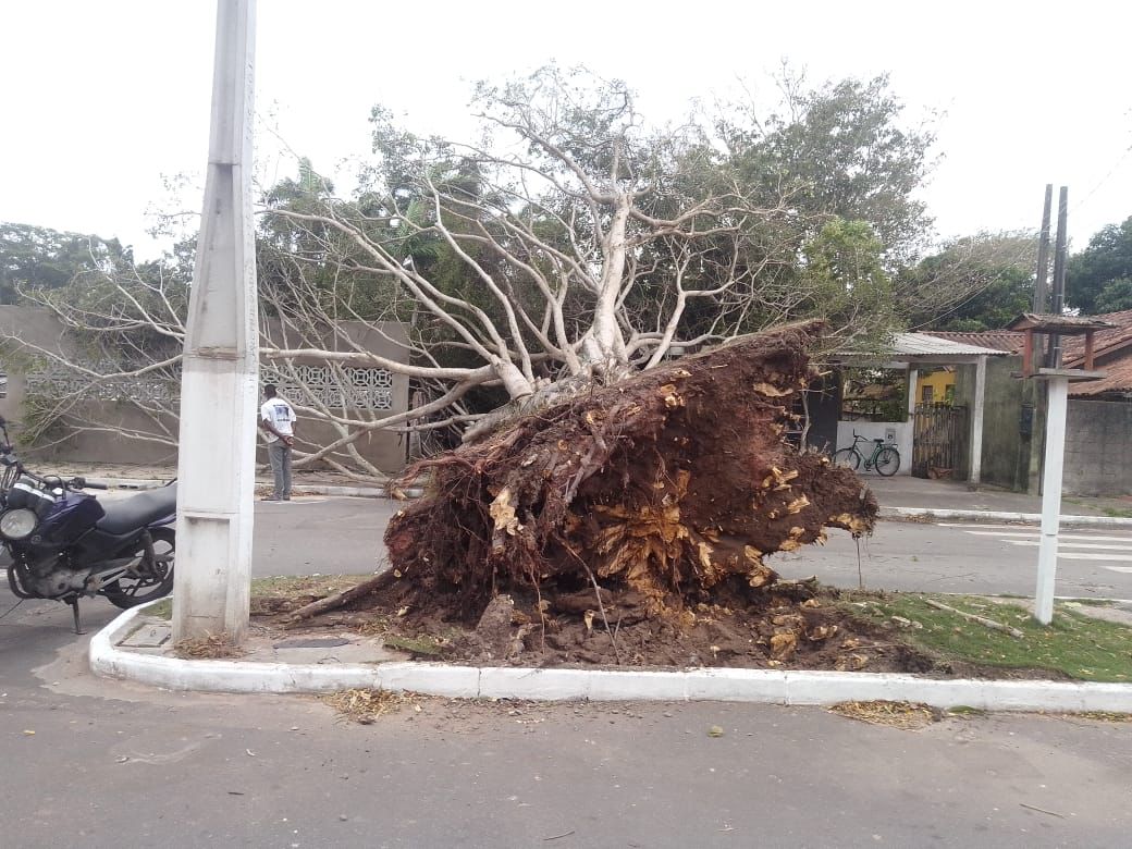 + Ventania derruba árvore de 10 metros e deixa bairro da Serra sem internet