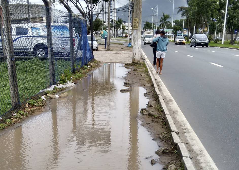 Entre a água e o risco de atropelamento. É desta forma que os pedestres que utilizam a calçada que fica em frente ao hospital estadual Dório Silva, em Laranjeiras ficaram na manhã desta quinta-feira (25).