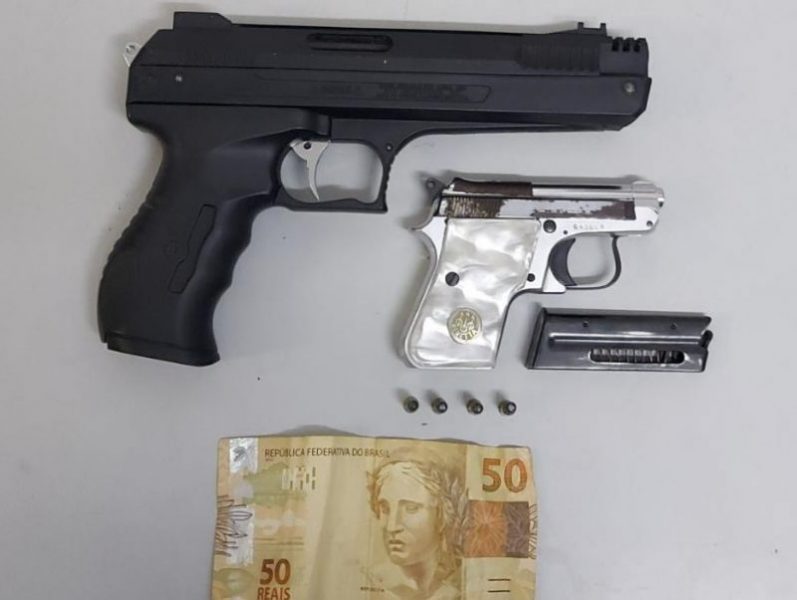 O suspeito avançou o sinal vermelho do semáforo e chamou a atenção dos policiais. Durante a abordagem e busca pessoal, foi encontrado com o homem uma pistola calibre .22, com 04 munições, além de 01 arma de pressão e R$ 50 em espécie. A ação aconteceu na terça-feira (15).