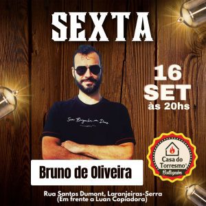 O final de semana pede uma boa música, e afim de levar um som com muita brasilidade para os moradores da Serra, o músico Bruno Almeida já tem shows marcados para este final de semana em alguns estabelecimentos da cidade.