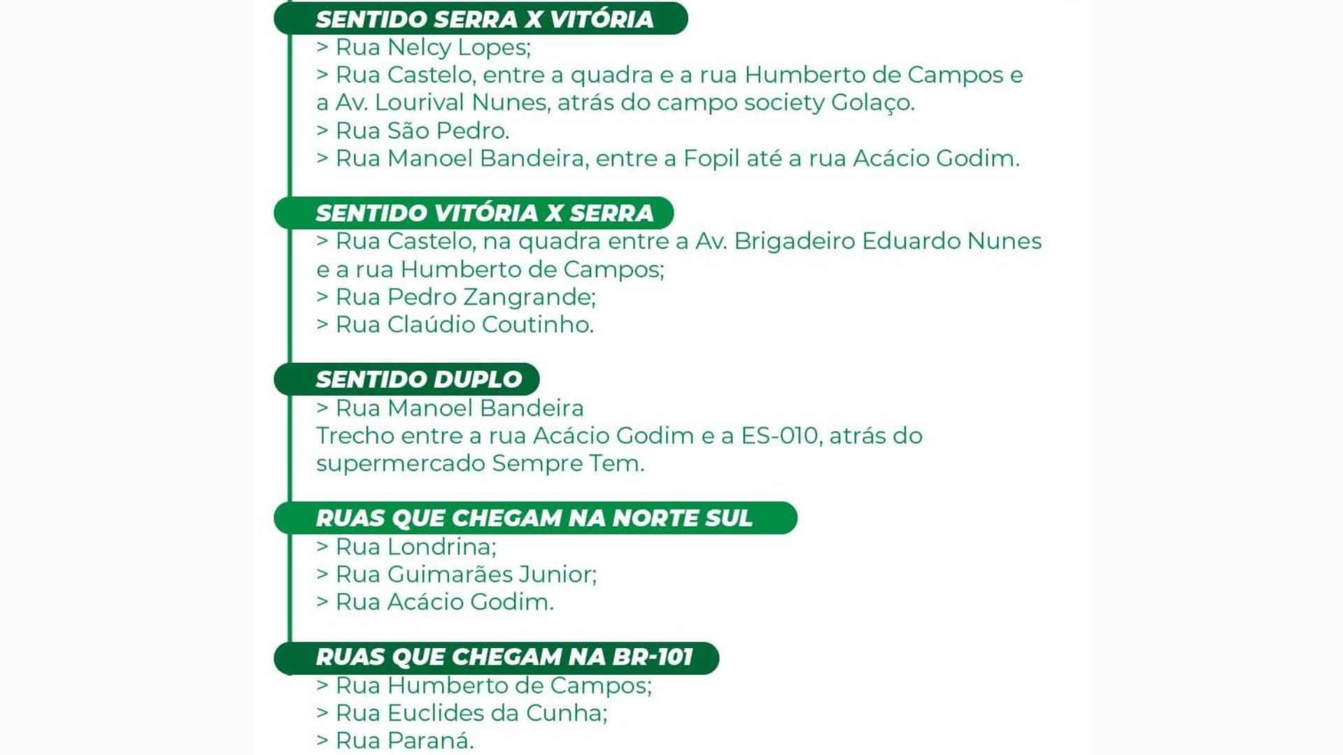 Veja as mudanças no trânsito da Serra a partir do dia 17: