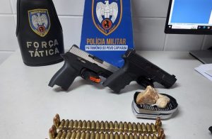 Três suspeitos foram presos na Serra após serem abordados com duas armas de fogo, munições...