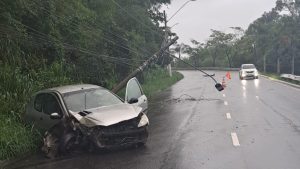Um motorista perdeu o controle de seu veículo e acabou colidindo contra um poste em...