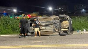 Um motorista capotou com seu carro durante a noite desta segunda-feira (17), em São Diogo...