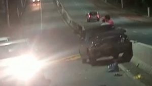 Um carro ficou destruído após colidir com outro veículo na Avenida Norte Sul, na Serra,...