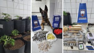 609 pinos de cocaína, 12 mudas e 5,160 kg de maconha foram apreendidos pela Polícia...