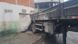 Uma carreta de 30 metros não conseguiu realizar uma curva e atingiu uma casa em...