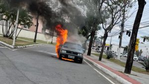 Um carro pegou fogo às margens da Avenida Norte Sul, nas proximidades de Valparaíso, na...