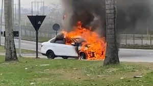 Um veículo pegou fogo na manhã desta sexta-feira (23) no trecho da BR-101, em Nova...