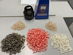 A Polícia Militar apreendeu 648 pinos de cocaína, 453 pedras de crack, itens roubados e...