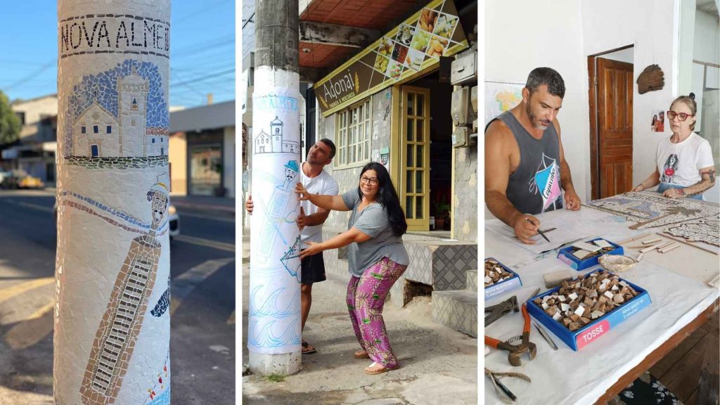 O mosaico foi instalado em um poste na Avenida Edvaldo Lima, próximo à subida do morro que dá acesso à Igreja de Reis Magos. Todo o trabalho foi realizado com materiais reciclados de construções, como sucatas de azulejos, e os artistas se dedicaram integralmente à concretização da obra.