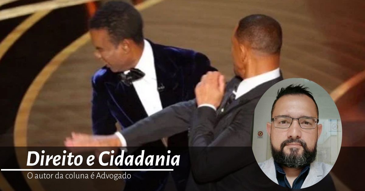Deixando de lado a possibilidade de tudo não ter passado de uma encenação, já que a cerimônia do Oscar já não mobiliza mais tanta atenção quanto antes. Quais seriam as implicações legais se o ocorrido se desse em terras tupiniquins?