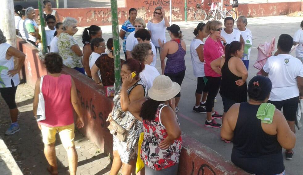 “Viemos para praça como protesto pela situação. Aqui era o lugar onde a gente fazia ginástica antes de começarem essa obra que não termina mais. O professor veio aqui e disse que não vai dar mais aula enquanto não tiver lugar. Agora ele está lá no posto de saúde, parado”, reclamou Francisca Clemente, que mora no bairro há 51 anos.