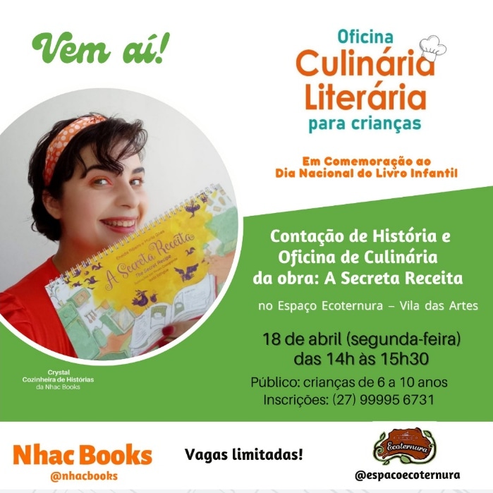 A Nhac Books é uma editora e produtora de experiências culturais e educacionais que incentiva o hábito da leitura e da alimentação saudável, através de ações criativas, como a Oficina de Culinária Literária. Vale dizer que é capixaba!