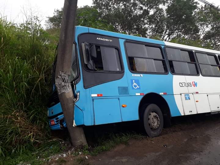 Um ônibus do Sistema Transcol bateu num poste na tarde desta terça-feira (6) próximo a entrada do bairro Taquara, na rodovia Norte Sul, na Serra.