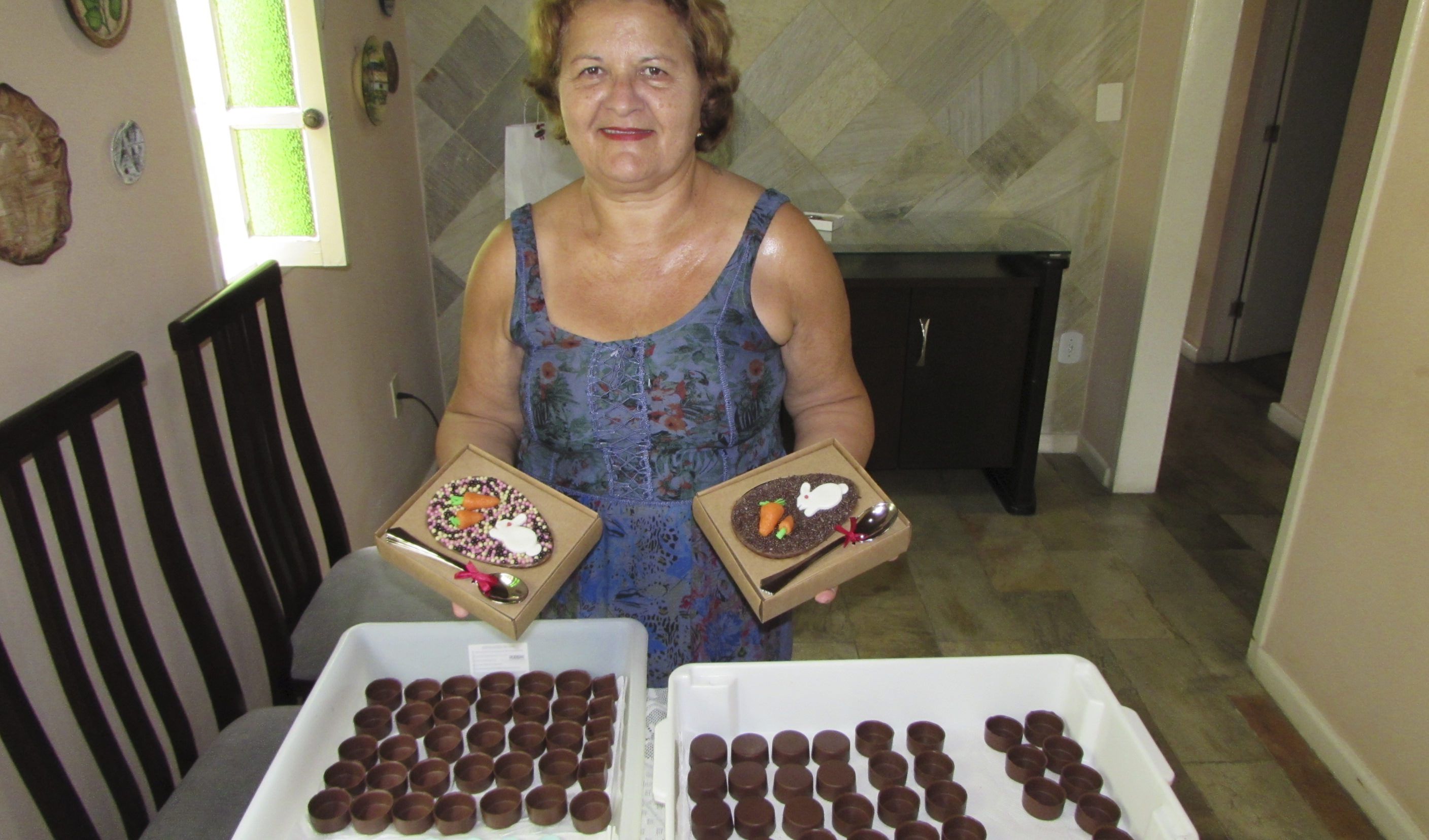 A Páscoa está chegando e as prateleiras dos supermercados estão lotadas de ovos de chocolates. São diferentes opções e valores que, para ovos de 350g, em média, vão de R$ 49 à R$ 80 e muitas vezes não cabem no bolso do consumidor. E como fazer para degustar essas delícias se o dinheiro é curto? Uma das alternativas são os ovos de páscoa artesanais e bombons caseiros que além de serem mais em conta, ajudam a completar a renda de muitas famílias.