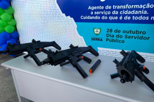 A Guarda Municipal da Serra recebeu, nesta sexta-feira (29), três armas de cano longo, carabinas...