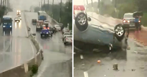 Um carro aparentemente do modelo Celta, capotou na Avenida Norte Sul, na manhã dessa segunda-feira....