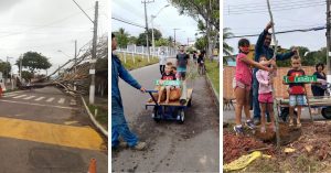 Diversas crianças se uniram a moradores do bairro Costa Bela, na Serra, para plantar um...