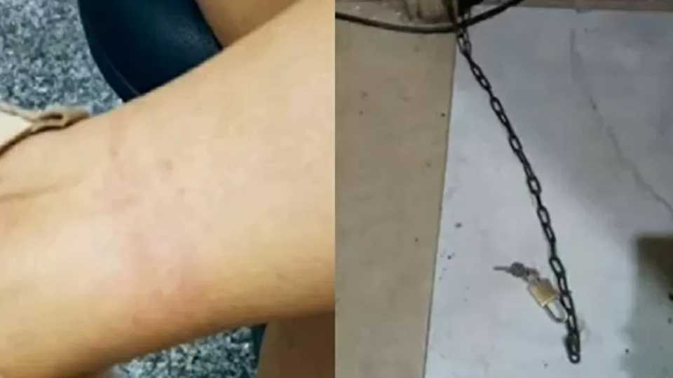 No local, a Guarda Municipal ouviu os pedidos, entrou na residência e viu a adolescente de 14 anos acorrentada dentro do quarto.