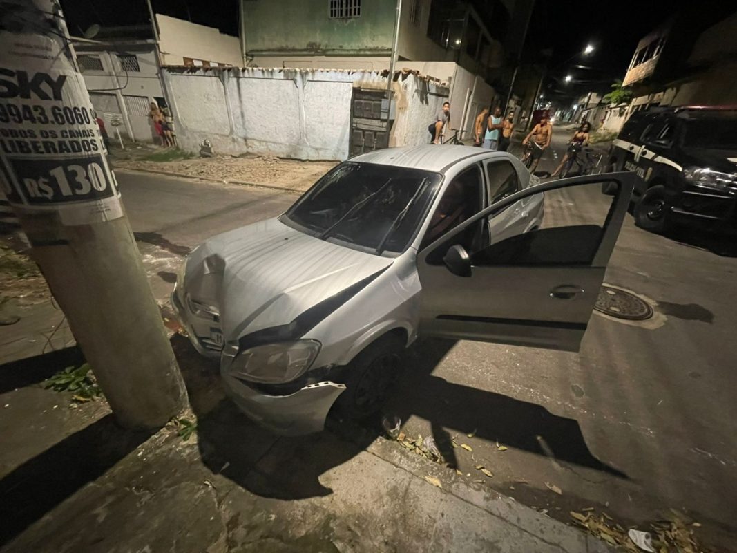Aproximadamente às 23h, em Feu Rosa, um veículo modelo Prisma de cor prata, recebeu voz de parada por policiais, que não teria sido obedecida; além de furar a blitz, segundo o delegado, o indivíduo ainda teria feito “menção de disparar contras os policiais”. No interior do automóvel, além do motorista, havia também o filho – um menino de 10 anos – e a esposa.