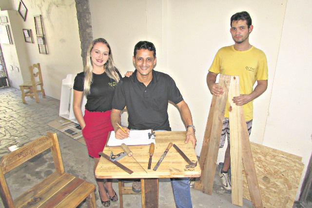 “Recolho os paletes nas empresas, que costumam ser de pinho ou de eucalipto, trago para a oficina e trabalho neles”, explica Anderson, que após o sucesso nos negócios já investiu em mais maquinário.