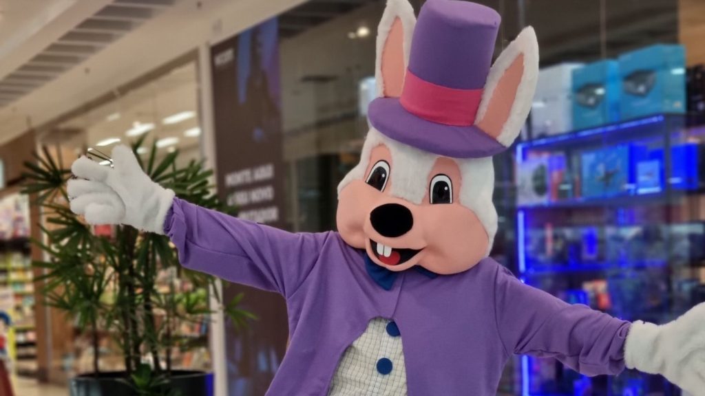 No shopping Montserrat, em Colina de Laranjeiras, a programação de Páscoa acontece no sábado (19), das 15h às 18h, no Piso L3. Além da presença do Coelhinho e de seus ajudantes Wonka e Sally, a criançada poderá participar de oficina de orelhinhas, pintura artística, curtir a apresentação da Banda Fanfarra e tirar fotos com o Coelho da Páscoa. A entrada é gratuita, mas é necessário garantir o ingresso antecipadamente pelo link CLICANDO AQUI.