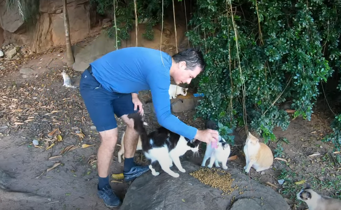 O médico Fernando Furtado de Melo, cuida dos gatos da Pedra da Cebola desde 2017 e está extremamente preocupado com o futuro dos felinos. Crédito: Divulgação