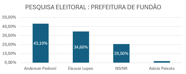 Pesquisa encomendada pelo Tempo Novo e realizada pelo Instituto Solução aponta para um cenário acirrado na cidade de Fundão, com o candidato a prefeito Anderson Pedroni Gorza (PSD) em vantagem. Na amostra, o candidato aparece com 43,1% das intenções de voto.