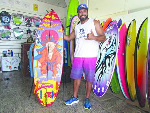 De Balneário Carapebus, Fabio Pereira Juvêncio, conhecido como Fábio Sombra, também usa Air Brush para estilizar pranchas e começou a trabalhar em 1989 em uma das primeiras fábricas em Laranjeiras. “Hoje faço todo o processo de fabricação: shaper, laminação, pintura e acabamento ou glass”, destaca.