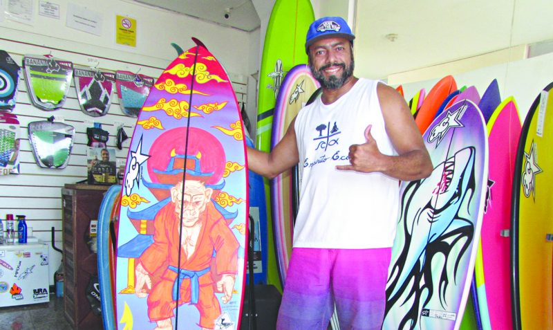 De Balneário Carapebus, Fabio Pereira Juvêncio, conhecido como Fábio Sombra, também usa Air Brush para estilizar pranchas e começou a trabalhar em 1989 em uma das primeiras fábricas em Laranjeiras. “Hoje faço todo o processo de fabricação: shaper, laminação, pintura e acabamento ou glass”, destaca.