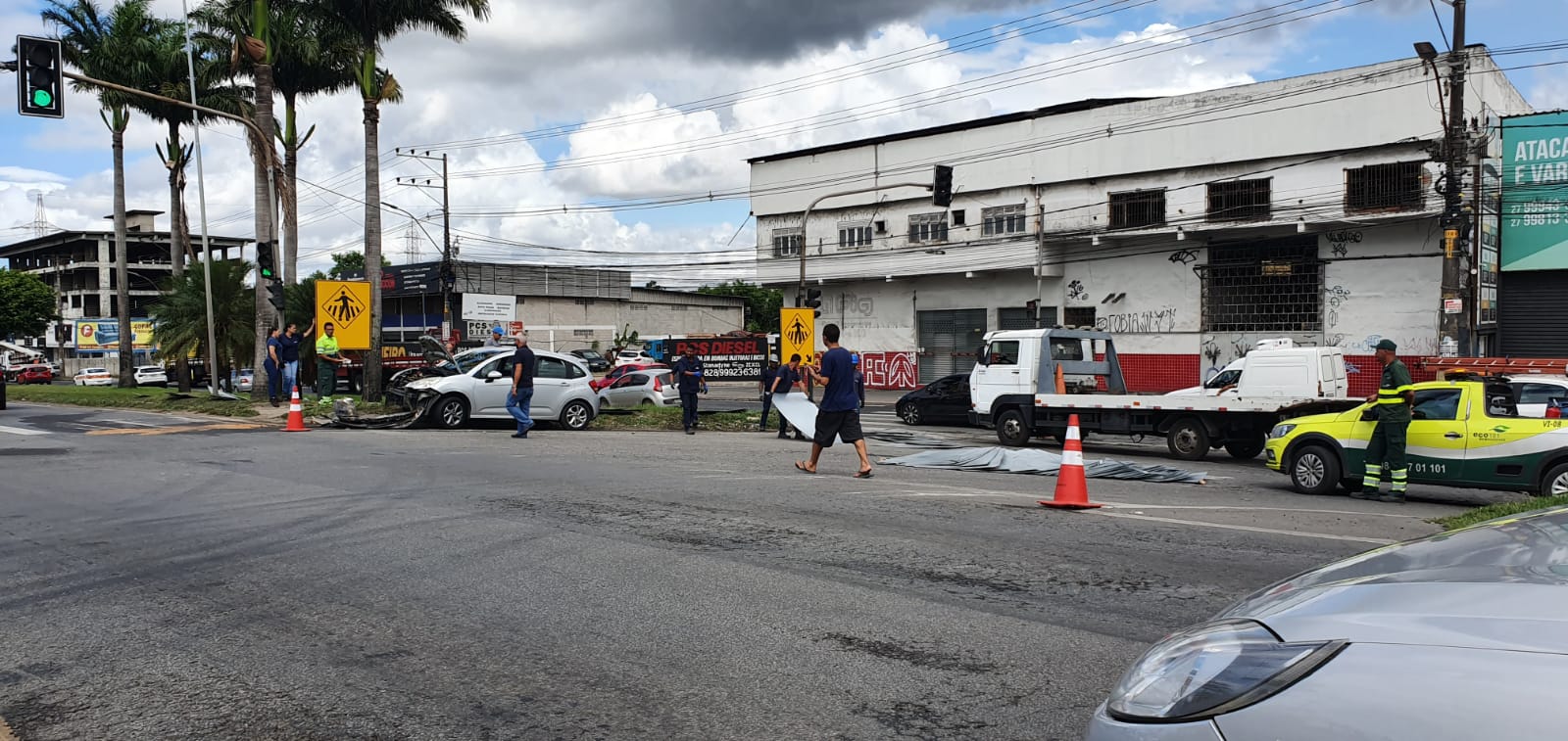 De acordo com informações do Agente de Trânsito da Serra, Miltom Moura, por conta do acidente a frente do automóvel ficou destruída.