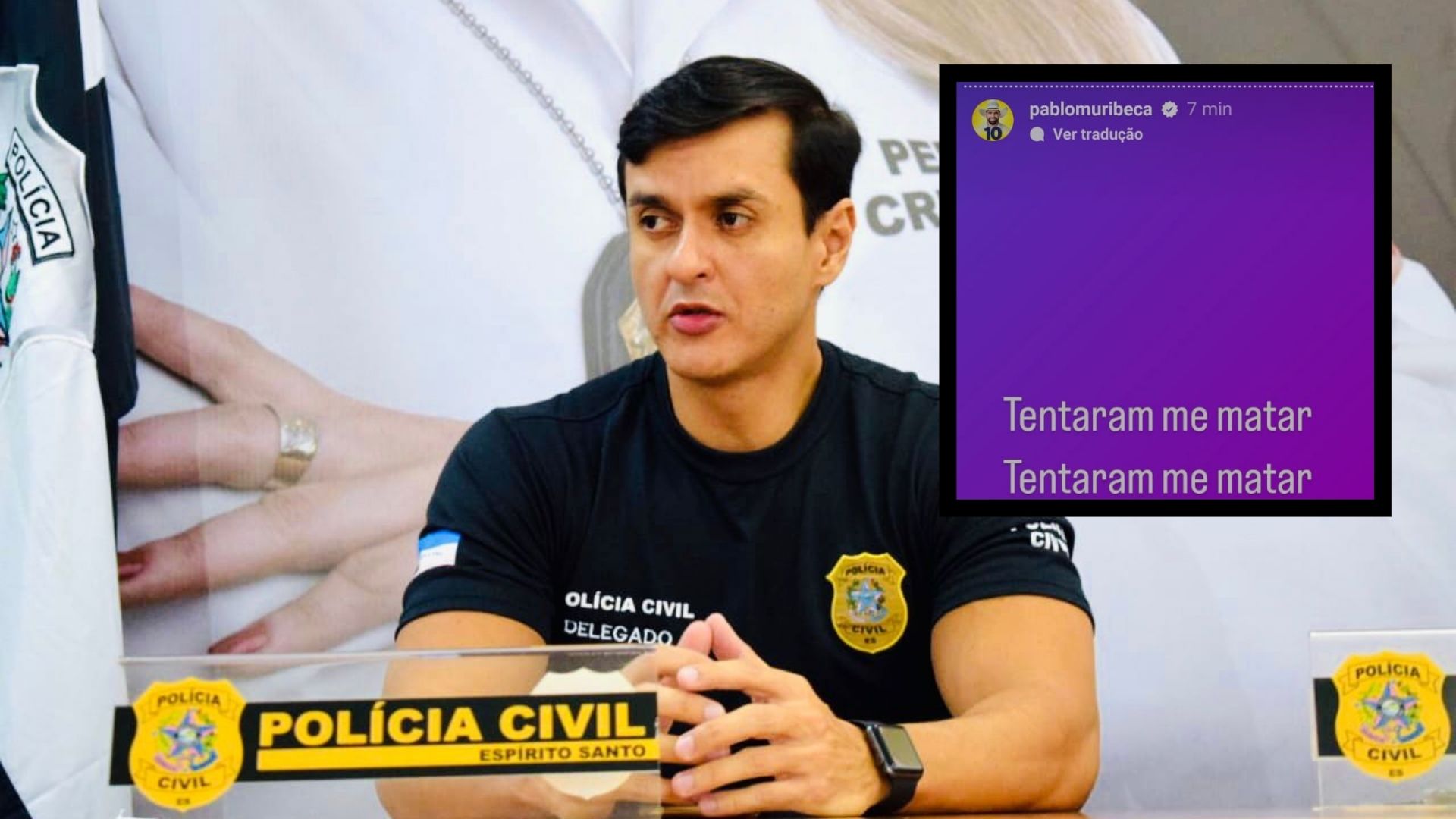 A Polícia Civil afirmou que não houve nenhuma tentativa de assassinato contra o candidato a prefeito da Serra, Pablo Muribeca (Republicanos). A investigação se refere à ocorrência registrada na noite de quarta-feira (23), em Central Carapina. Nas redes sociais, Muribeca havia alegado que foi alvo de uma tentativa de atentado contra sua vida.