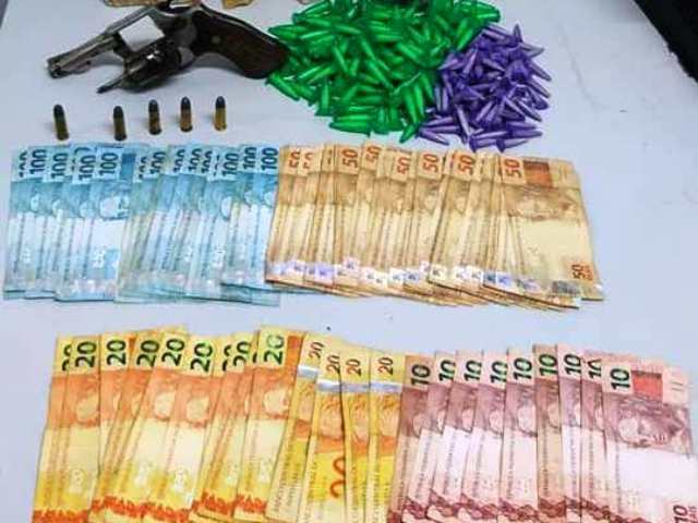 A viatura que estava no local abordou um homem que se encontrava em uma área de mata. Com ele foram achados 42 pinos de cocaína, sete buchas de maconha e a R$ 151 em dinheiro.
