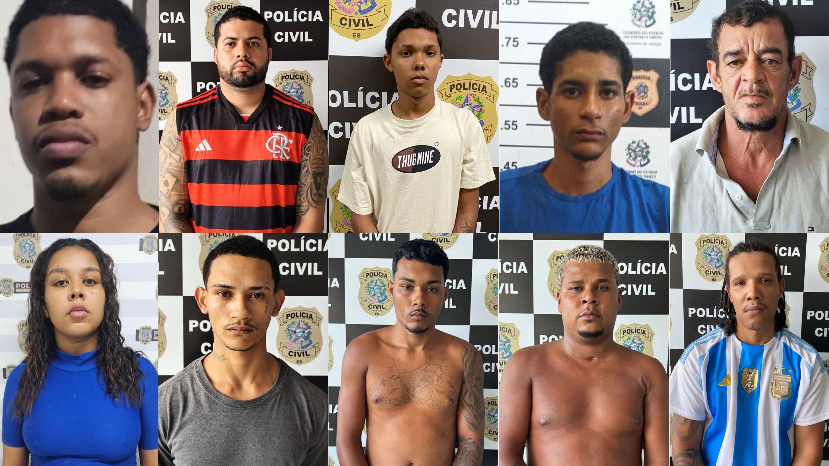 Ao todo, 10 suspeitos foram presos durante as investigações conduzidas pela DHPP da Serra. Entre eles estão Felipe Barreto, o “Barretinho”; Ágatha Nascimento, que responde em liberdade; Everton Júnior Pena Nunes, o “Goe”; Lázaro Silva Muniz, o “Popeye”, apontado como mandante de dois homicídios; Marlon Nascimento da Conceição, o “Marlin”; Daniel Bredoff Firmino, o “Ceará”; Luiz Gustavo de Souza Sobrinho, o “Gustavinho”; Talysson Filipe Lima da Silva, o “Talyssinho”; e Uadson Gomes Santos, o “Tim”, preso por um homicídio motivado por desentendimento pessoal.