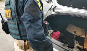 A Polícia Rodoviária Federal (PRF) apreendeu três armas de fogo no interior de um veículo...