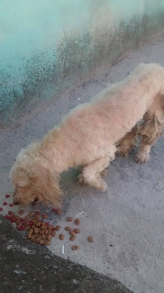 Ele fica perto do supermercado Ramos e está nesta situação: pelos embolados, sujo e maltratado.