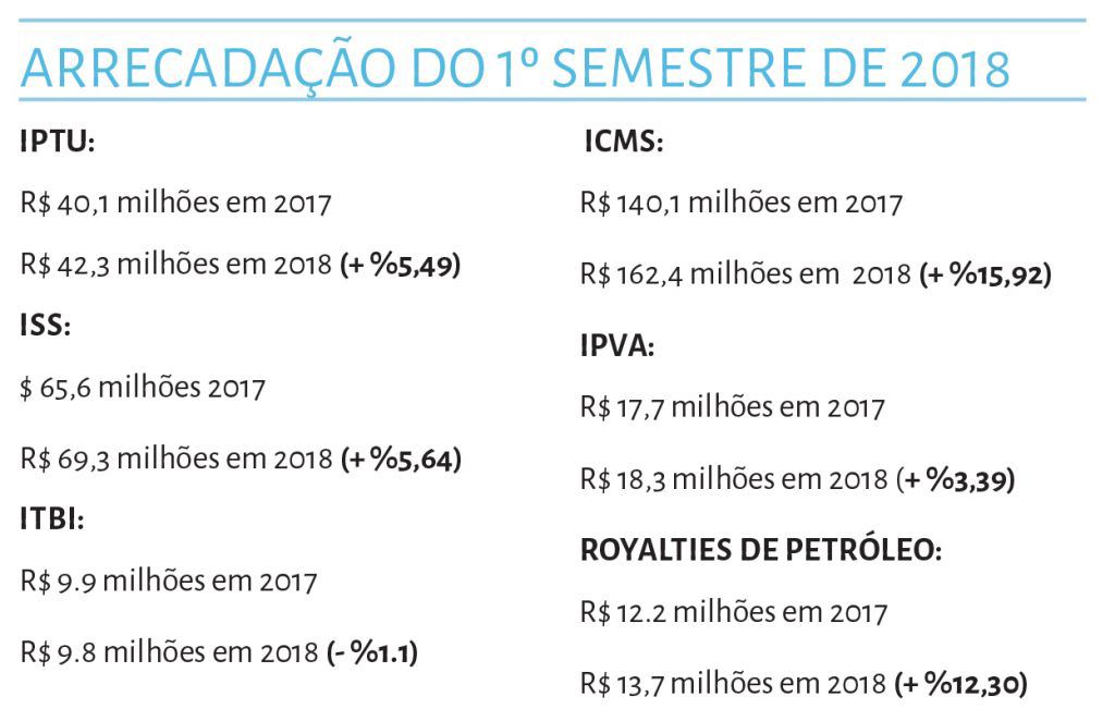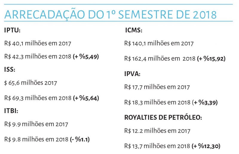 Mesmo em meio à crise econômica o Munícipio da Serra arrecadou 10% a mais no 1º semestre de 2018, se comparado com o mesmo período do ano passado, algo em torno de R$ 50 milhões. Segundo o secretário de Finanças da Serra, Jorge Teixeira, todos os principais impostos tiveram aumento de arrecadação, especialmente o ICMS. Apenas o ITBI apresentou queda de 1%. Entre os motivos desse aumento, o secretário apontou mais controle contra devedores da Serra e maior atividade econômica na cidade.