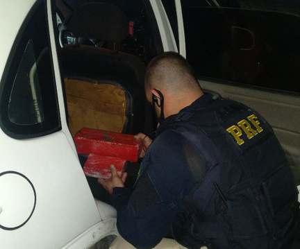 No total, os dois tabletes pesavam aproximadamente 2 quilos. A apreensão aconteceu no KM 267 quando agentes a PRF abordaram um veículo GM/Classic, com dois ocupantes, um deles menor de idade.