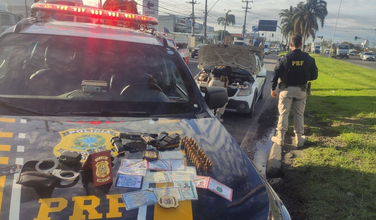 A Polícia Rodoviária Federal (PRF) prendeu na tarde desta segunda (10) na BR 101, na Serra, na região de Carapina, próximo a Contauto, um homem por uso de documentos falsos, porte ilegal de arma e receptação de veículo roubado.