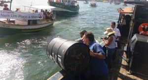 No último domingo, a procissão de São Pedro em Vitória teve um barco diferente: o P-666, uma ‘plataforma’ de petróleo. Em meio a tantos barcos festivos em alusão ao santo, o P-666 se destacou pela irreverência. E o artista responsável pela obra, Renato Filho, vive em Manguinhos, onde produziu cada detalhe da alegoria.