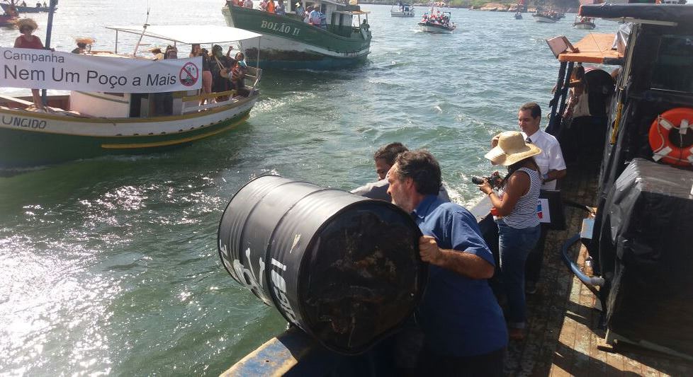 Decorado com uma miniatura de helicóptero, barris com símbolos de morte, uma torre de petróleo e algumas pessoas vestidas de executivos e seguranças armados, o barco foi criado para divulgar a campanha Nem um Poço a Mais, com o objetivo de levar as pessoas à reflexão sobre os impactos causados pela exploração do petróleo.