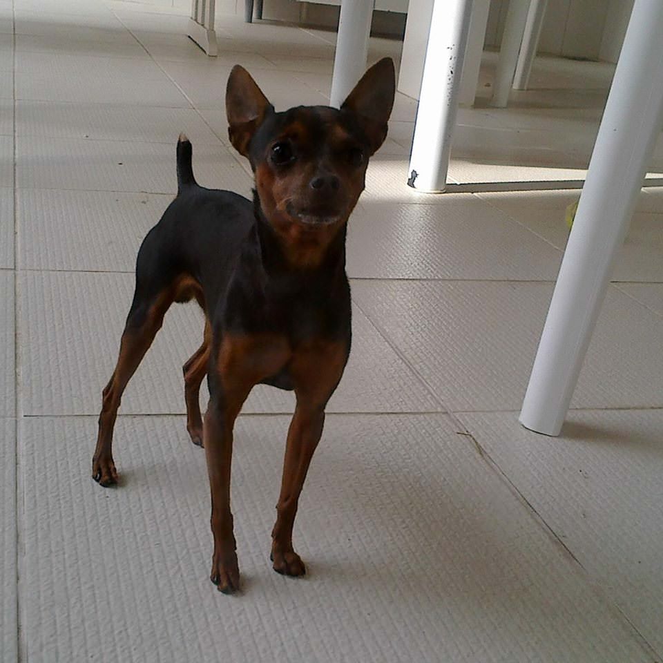 Este Pinscher que atende pelo nome de Non sumiu em Laranjeiras desde o ano passado.