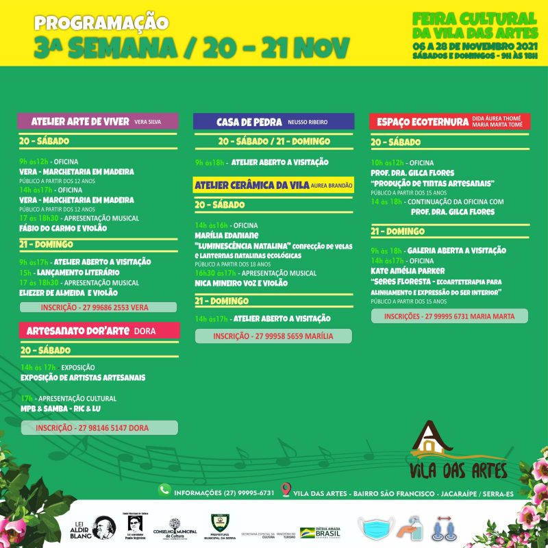 A feira vai acontecer em todo o mês de novembro de 2021, sempre dentro dos ateliers e espaços culturais, apenas nos sábados e domingos, no horário de 09 às 18 horas.