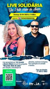No próximo dia 26, as 14 horas vai ter uma outra Live. Será uma dobradinha entre Renato Ribeiro e a cantora Tati Azevedo. “Uma iniciativa da Tati com o objetivo de se juntar a está corrente do bem”.