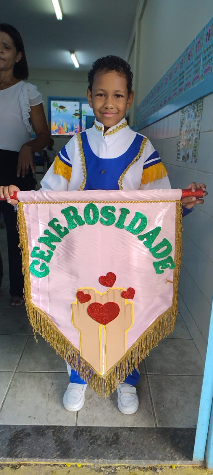 Um dos destaques foi o desfile de estandartes realizado pelas turmas, cada uma apresentando uma virtude ou valor representativo.